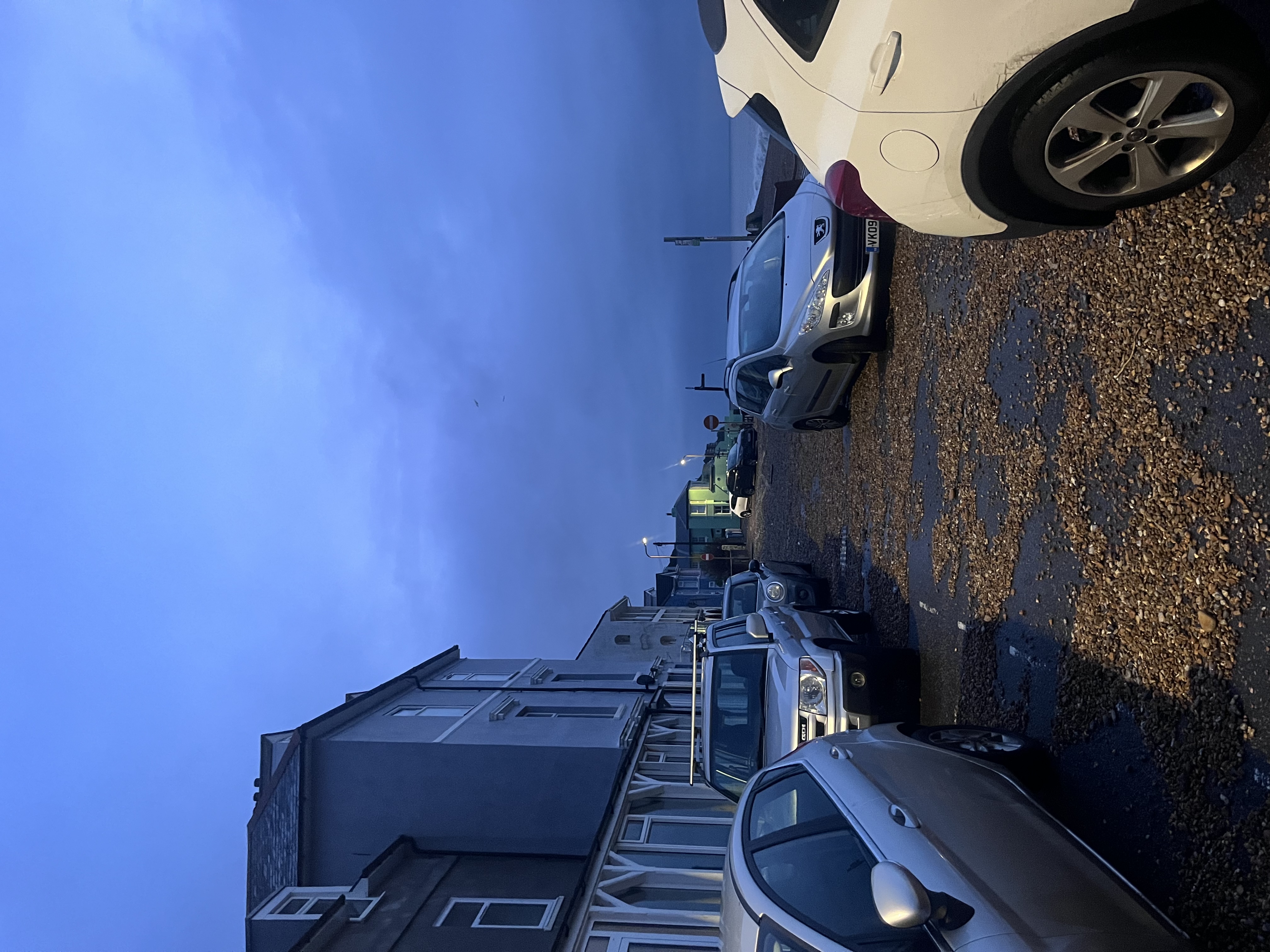 Dustbin covered by shingle outside Homevale after Storm Goretti
