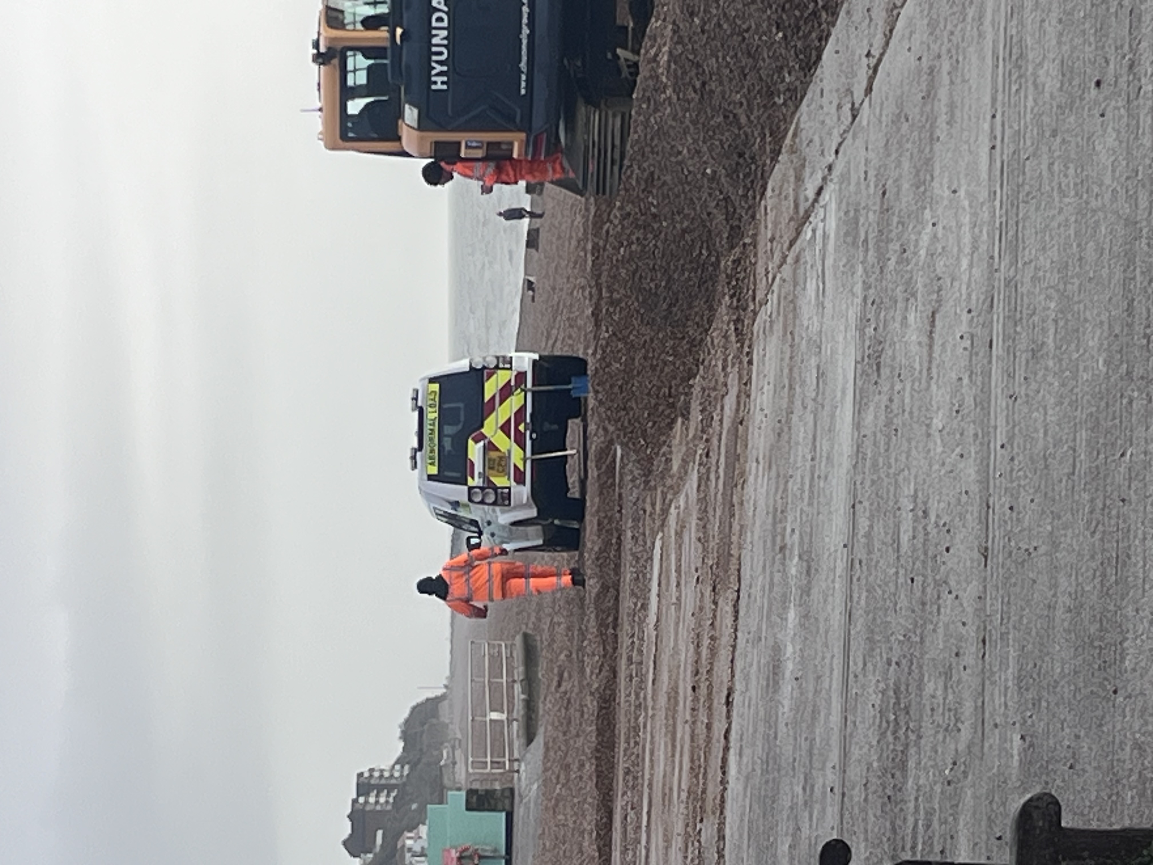 Sweeping up the beach after Storm Goretti