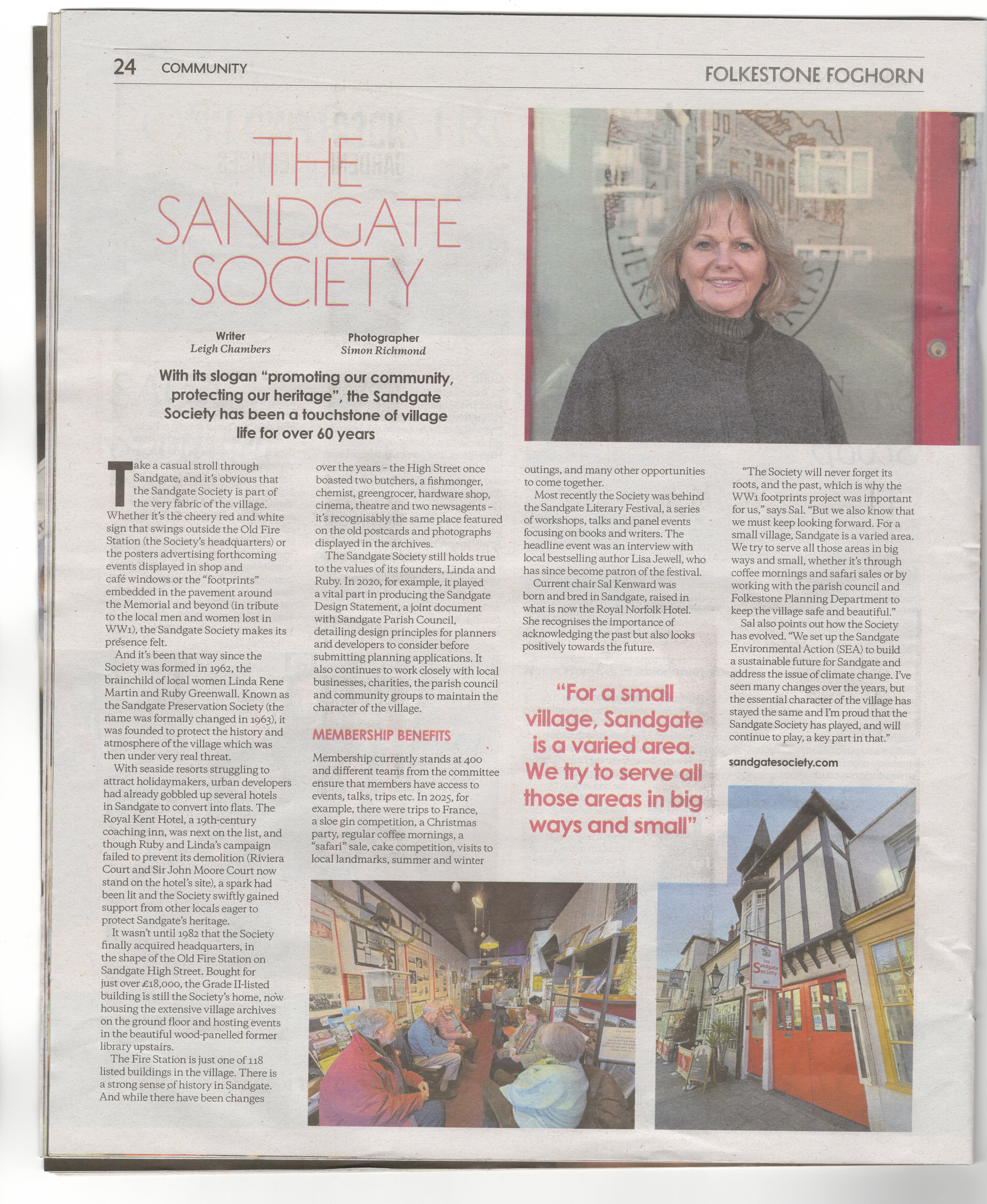Article by Leigh Chambers about Sandgate Society from Folkestone Foghorn February 2026